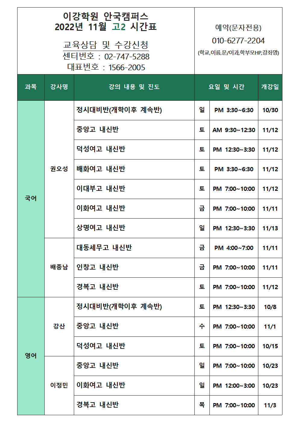 이강학원 강좌를 소개합니다.