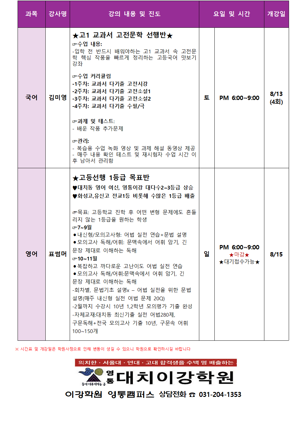 이강학원 강좌를 소개합니다.