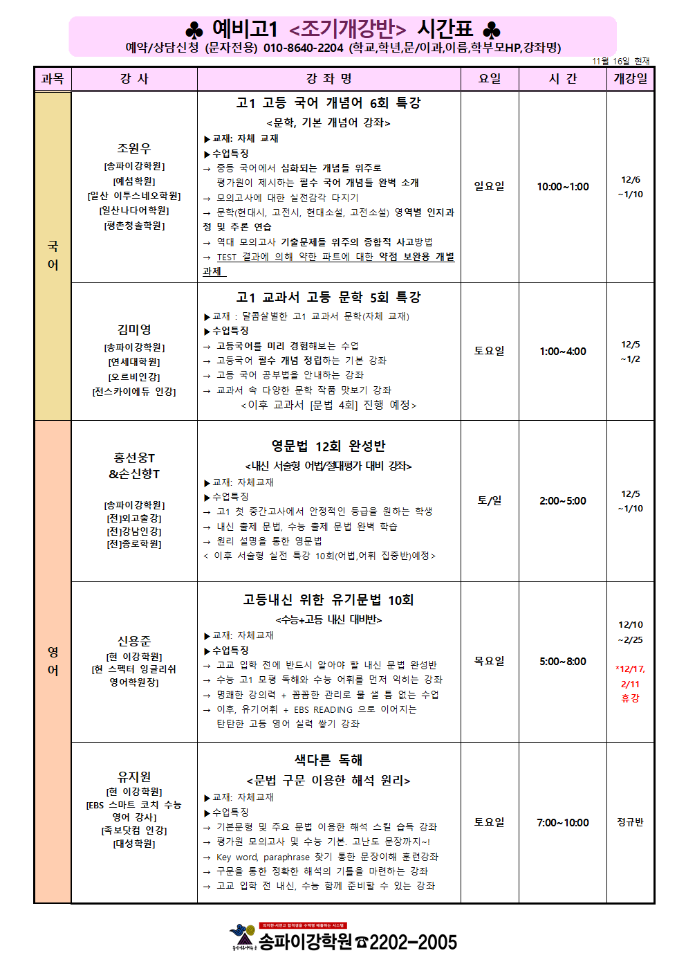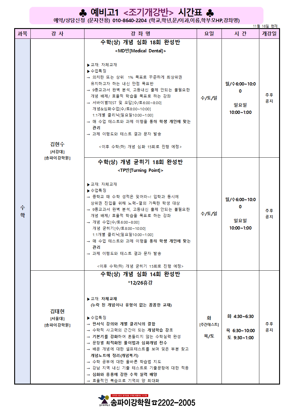 이강학원 강좌를 소개합니다.