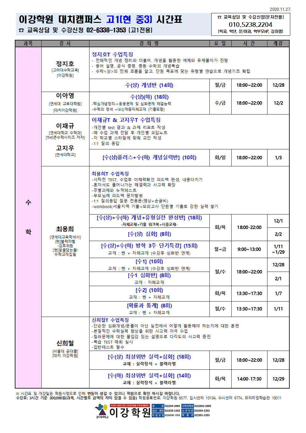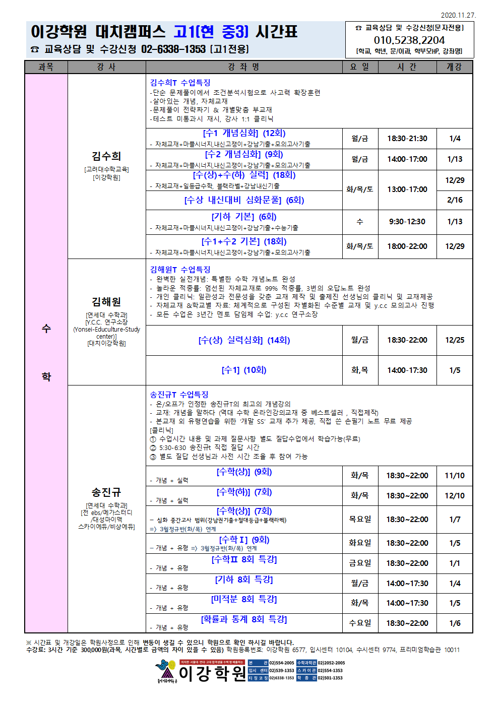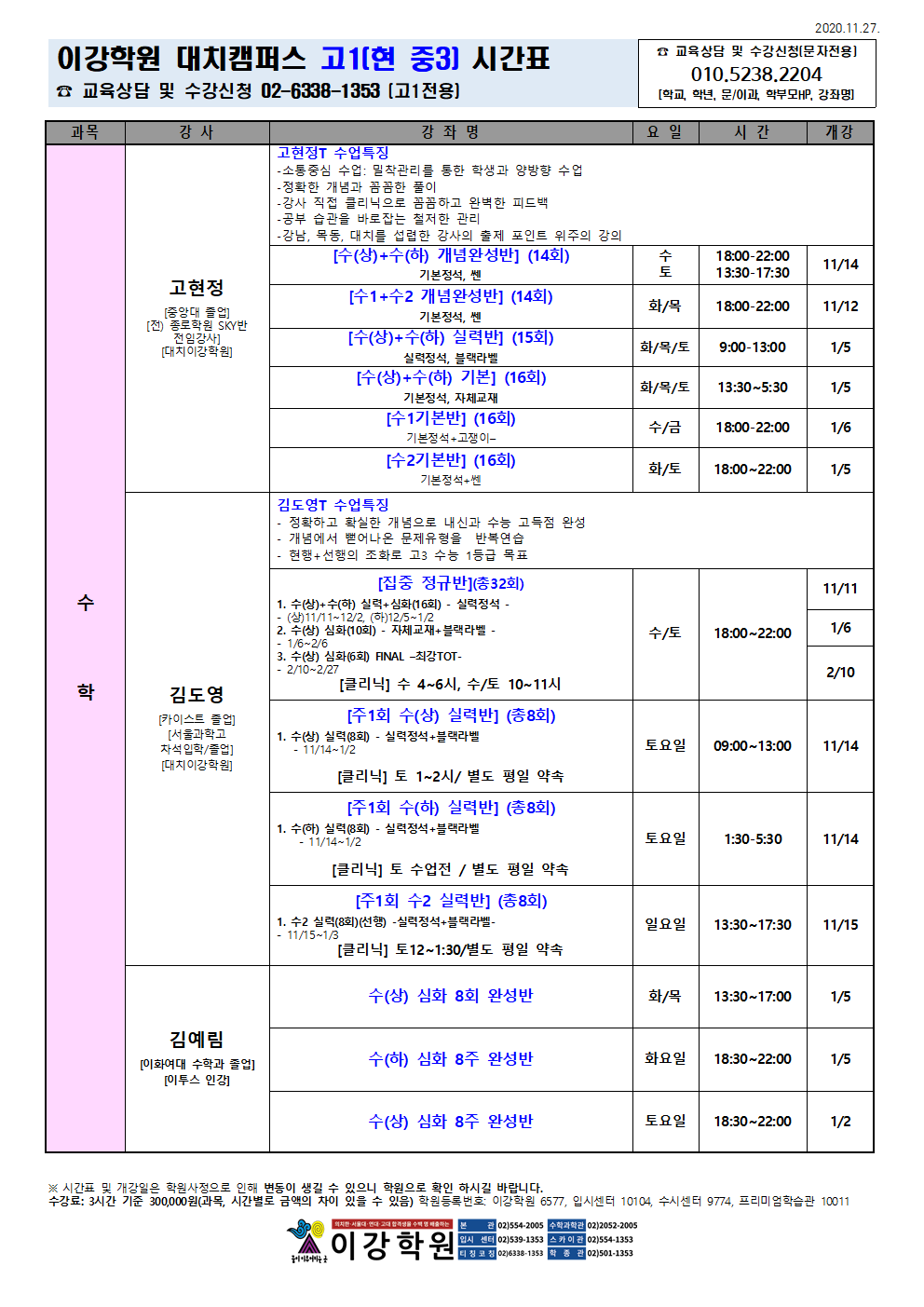 이강학원 강좌를 소개합니다.