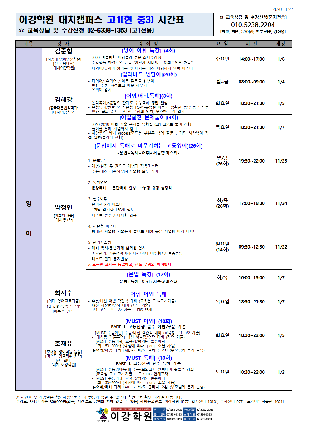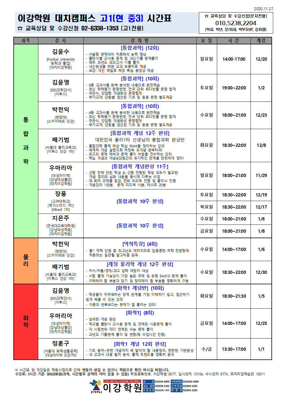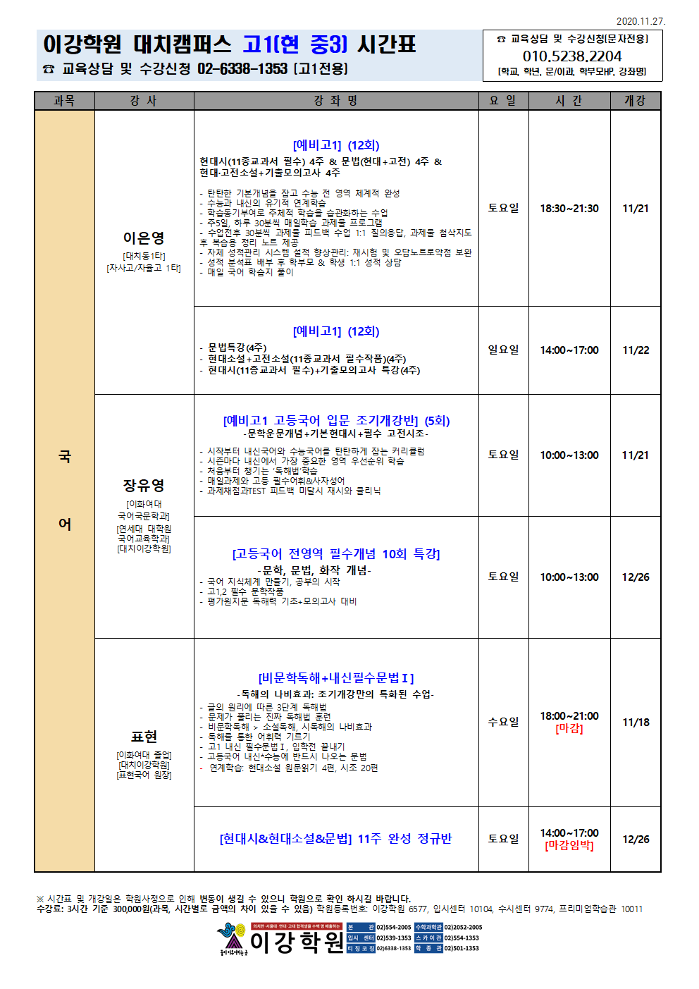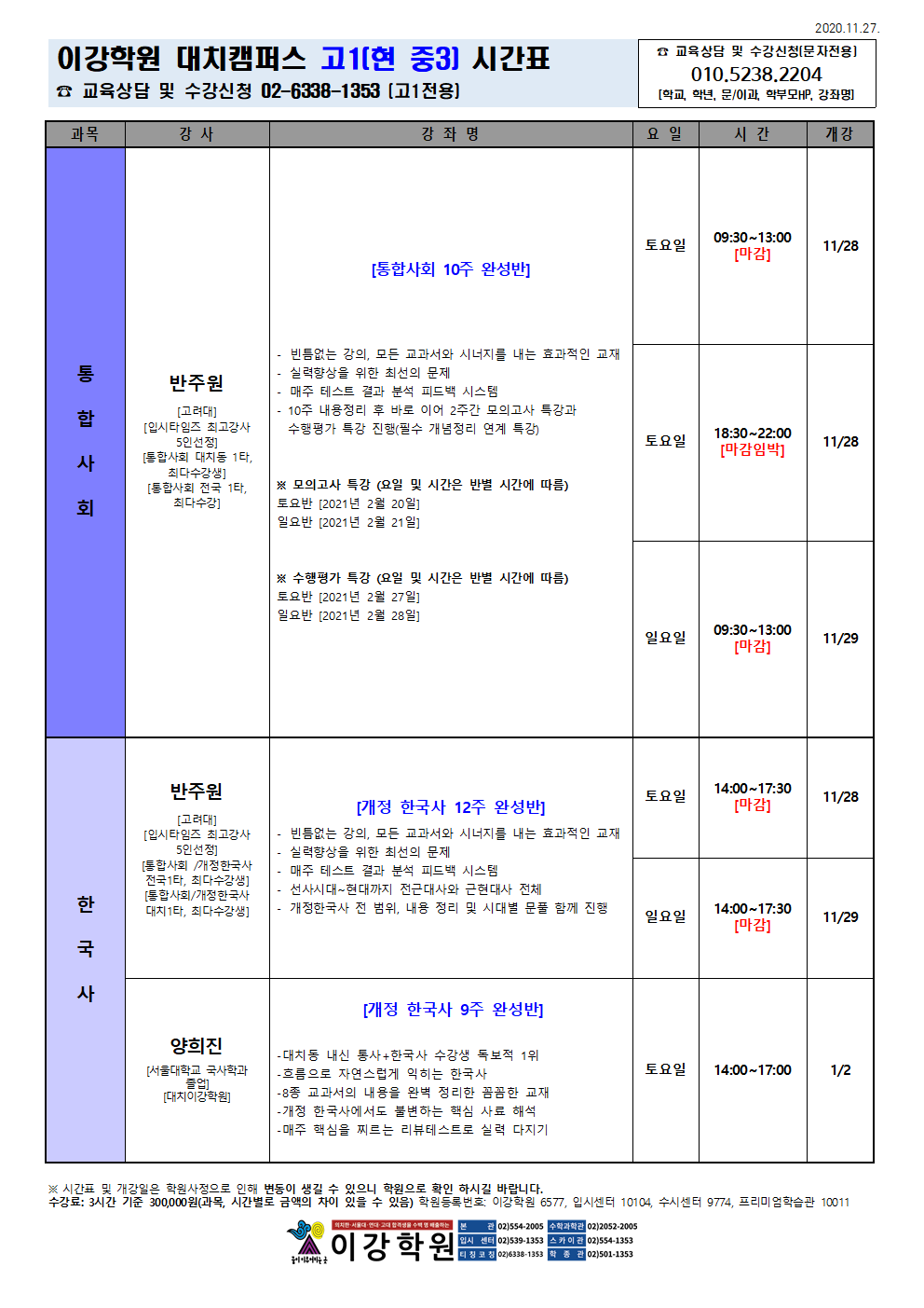 이강학원 강좌를 소개합니다.